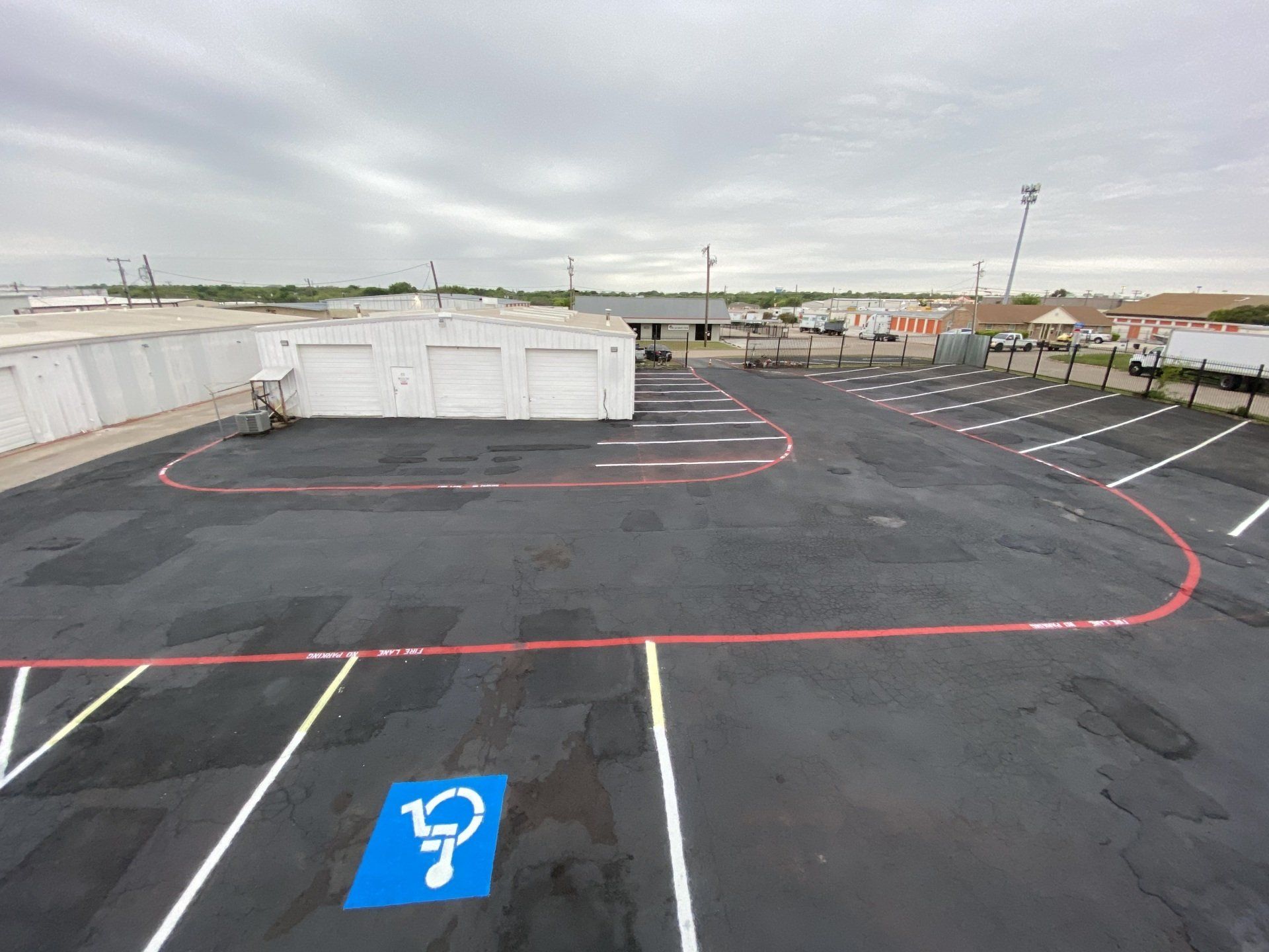 Office with Restroom, Shop with Restroom with Shower, New Insulated Roof with Skylights, Three Garage Doors 10 x 10 with two-man doors, New 8 Foot Rod Iron Fence, New Shop Sink, New A/C and Gas Heat Each rental unit with its own power, water, gas and 12 assigned parking.