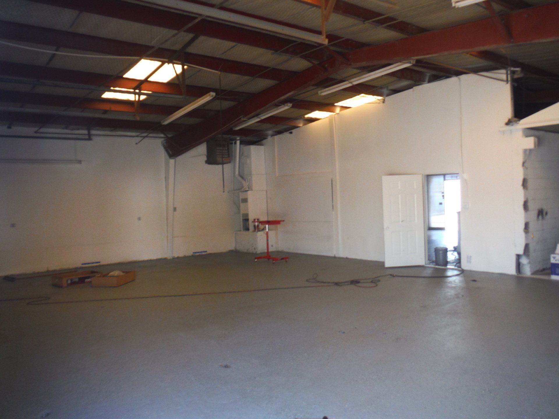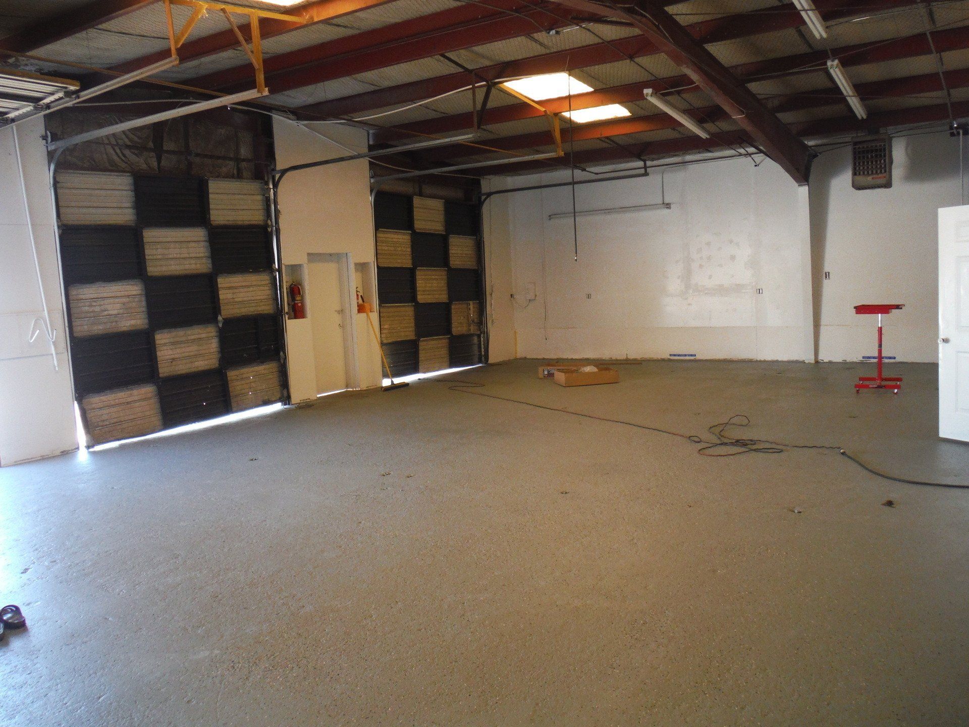 1,100 A/C Warehouse/Shop/Office, 1 bathroom/shower, Insulated Roof, Sky Lights, 2 Garage Doors Inside.